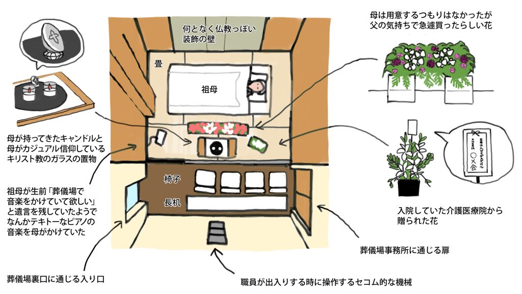 ・祖母は、母が言うには生前遺言で葬式をあげなくていいと言っていたようで、今回その通りにしたとのことだった。